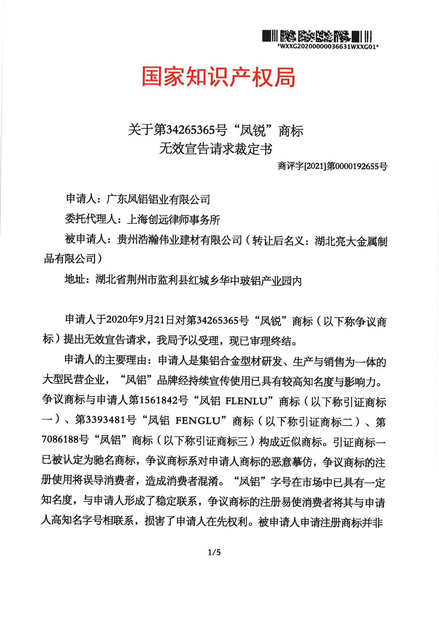 铁岭辉知队 | 国家知识产权局:“凤锐”商标无效