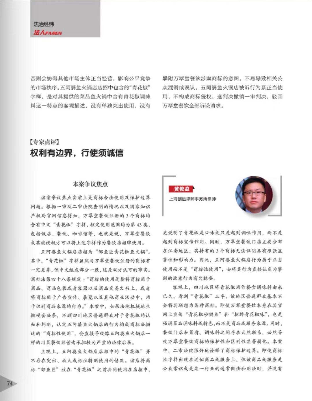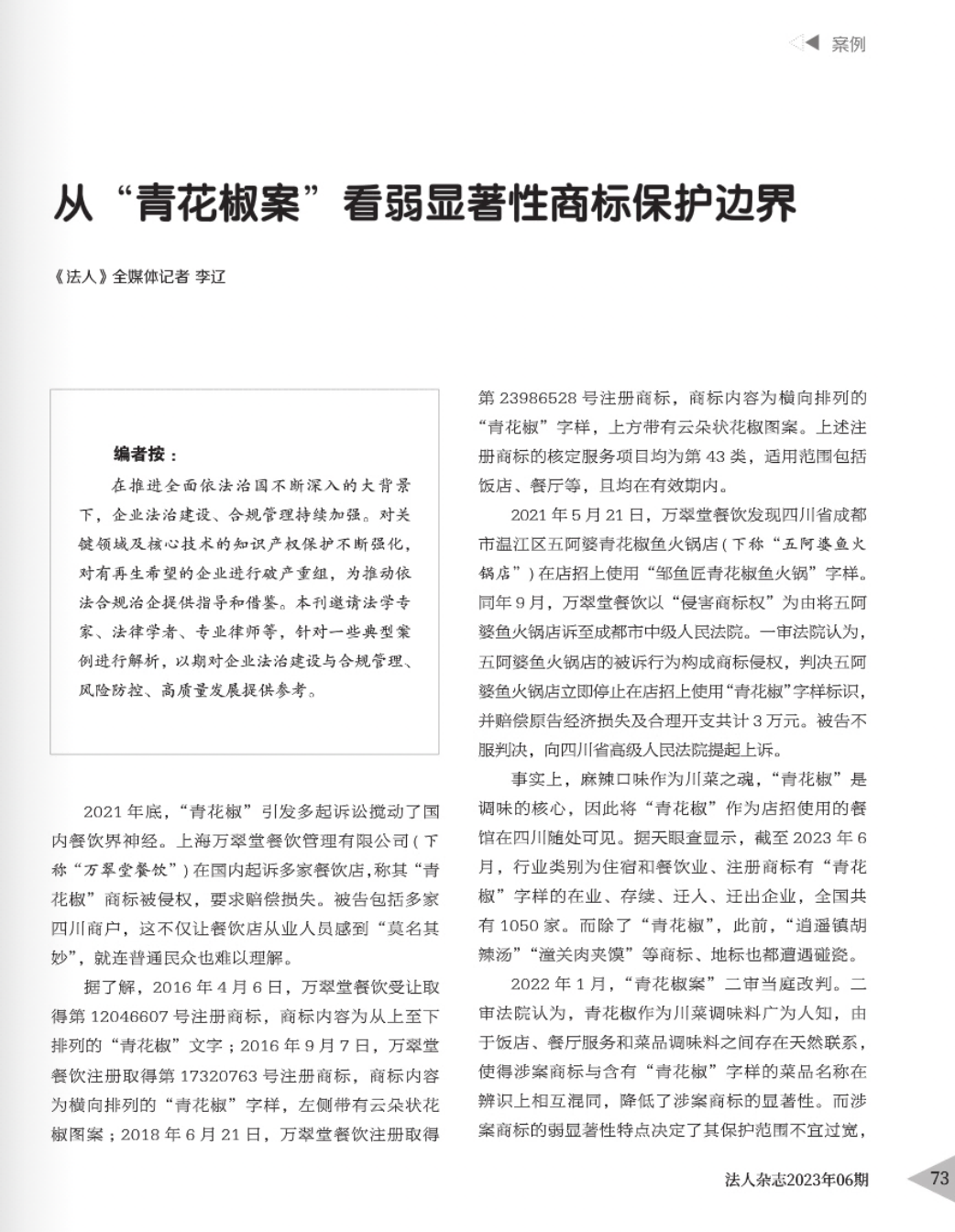 铁岭辉知简讯 | 辉知队黄俊益律师应“法治日报”旗下杂志邀请,就“青花椒”案发表专家点评